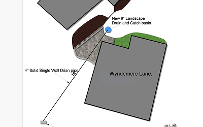 Solutions may include landscape drains, piping, grading adjustments, or other methods.