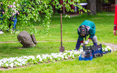 The lawn is rolled and irrigated so that the soil and grass are in good contact to be well established.