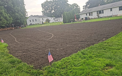 Topsoil is added or amended to create a nutrient-rich base for root growth.